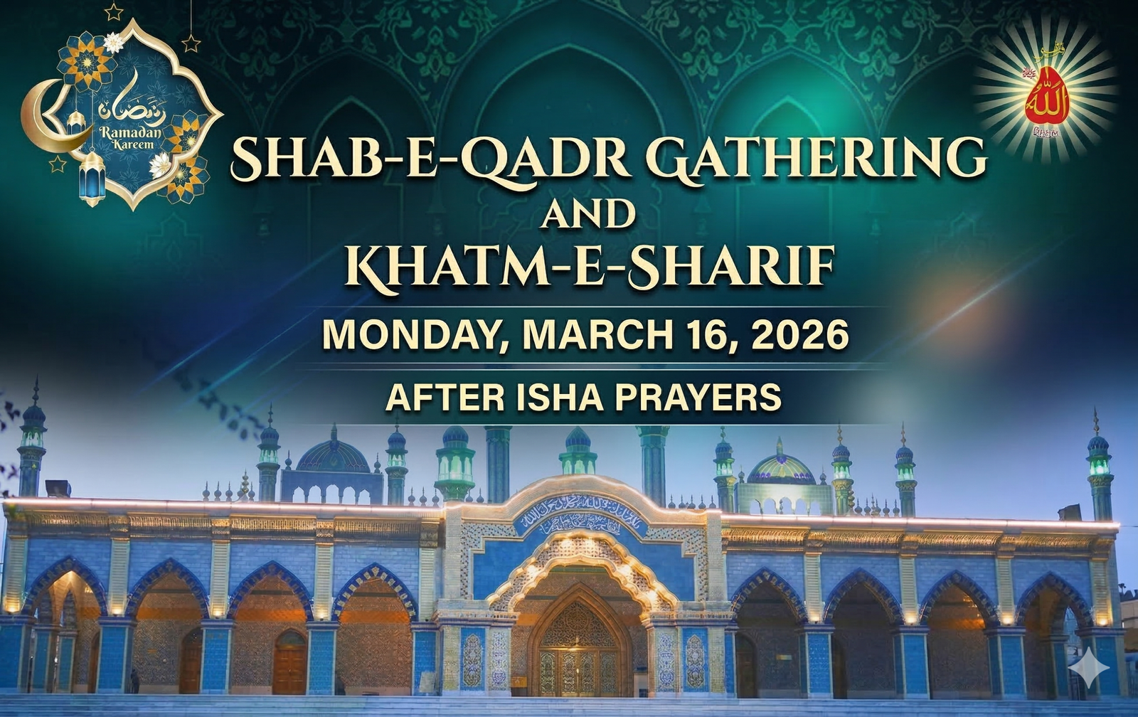 In the blessed month of Ramadan, a special spiritual gathering has been organized for seekers of the Divine. A grand Mehfil Laylat al-Qadr 2026 and Khatam Sharif will be held to seek the immense blessings and mercy of Allah during these sacred nights.